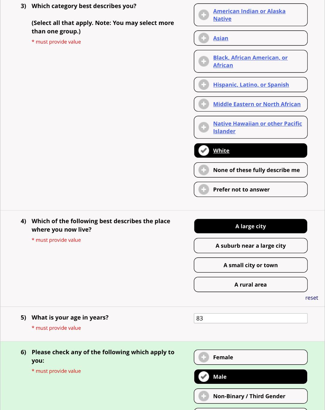 Note: Only a few of the survey pages are included in this web page.