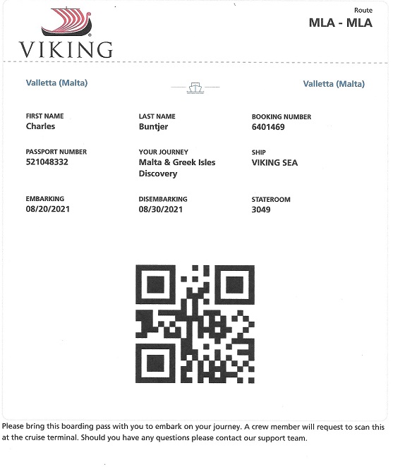 This will be our first trip outside the U.S.A. in a year and a half! Our last trip was to Dubai, Oman, India and Sri Lanka in 2020 for my 80th Birthday! This trip will be on the Viking Sea to Malta, the Greek mainland - Kalamata and Athens, Santorini, Rhodes, Crete and back to Malta. Since the COVID-19 pandemic, there are a lot more documents to be filled out and vaccinations to be had.