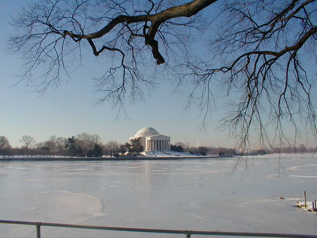 the Tidal Basin with its cherry trees, and stairs lead up through a